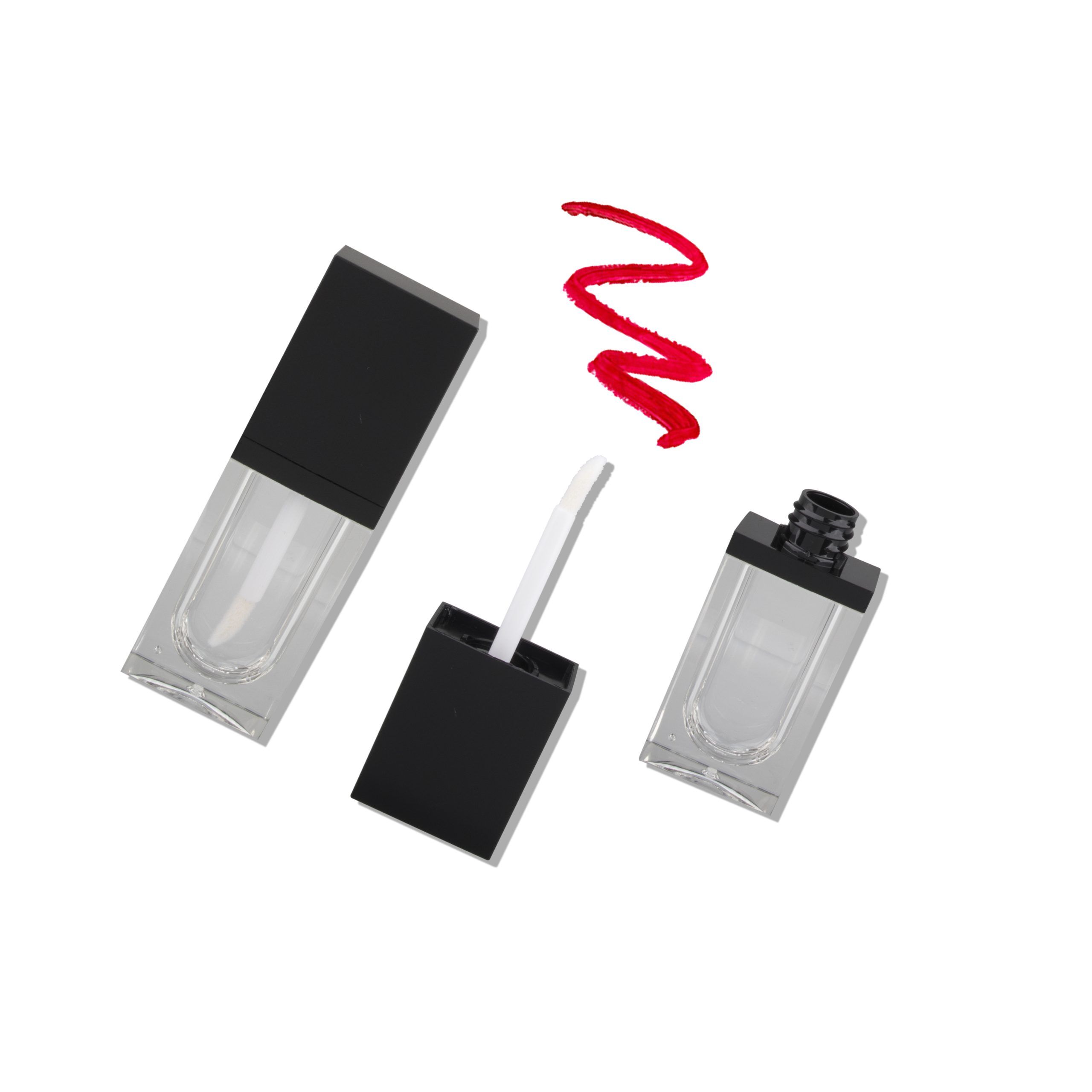 Custom Empty Cosmetic Packaging Flat Square Lip Gloss Containers Tube Transparent Lipgloss Tubes – LG068
