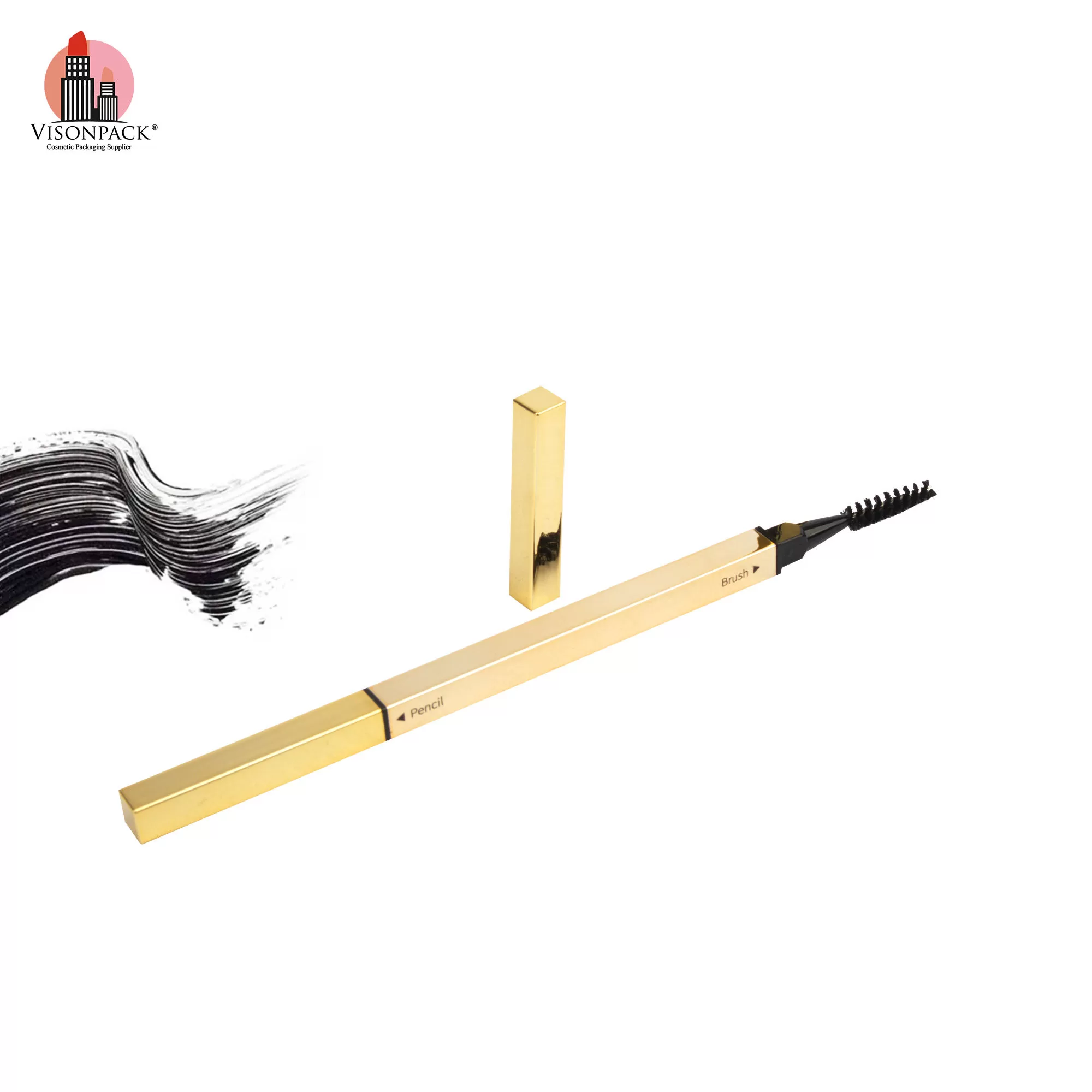 Golden Square Double Sided Head Eyebrow Eyeliner Twist Up Pencil Slim Empty Containers Brush – EK016