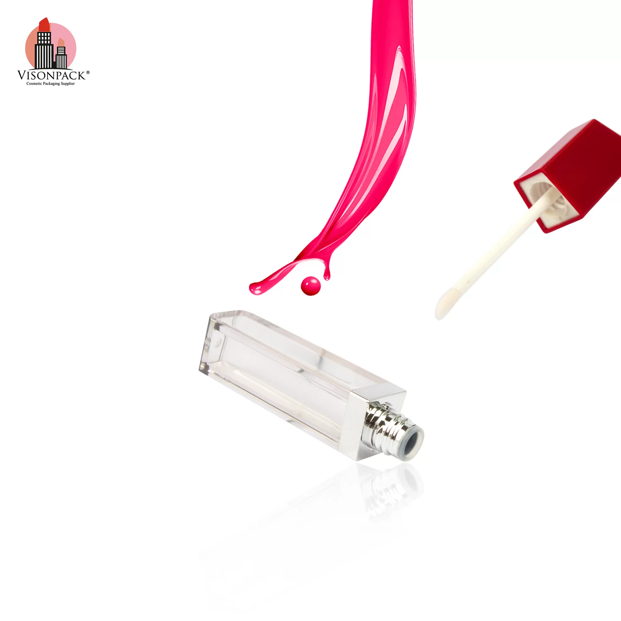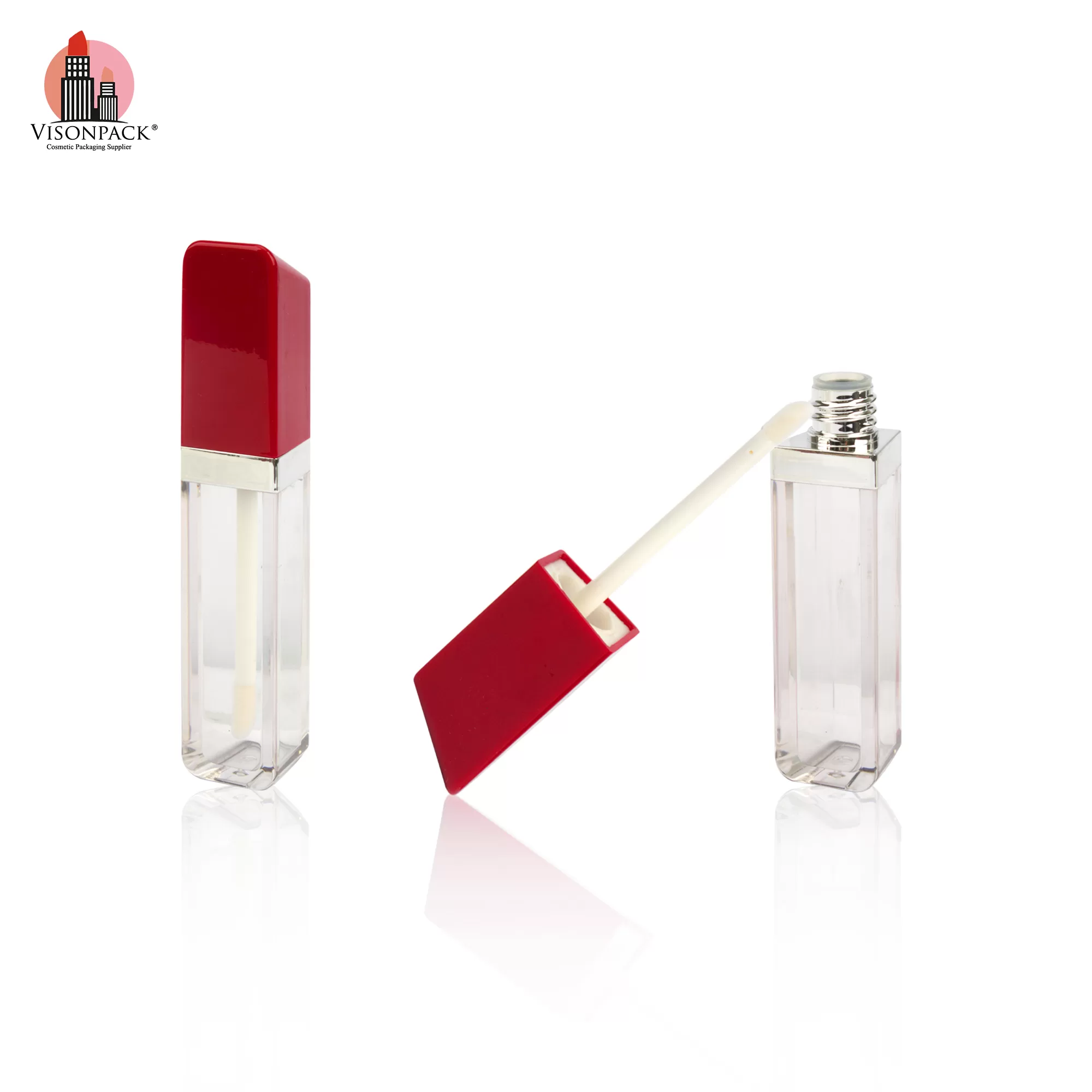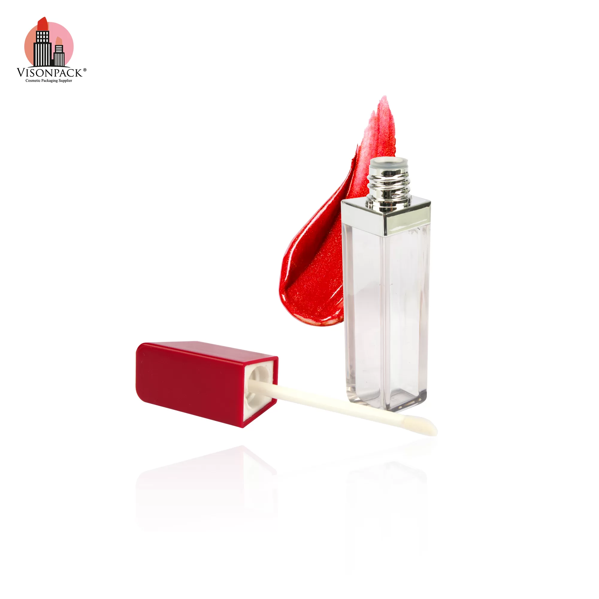 Cosmetic Packaging Square Lip Oil Bottle Custom Empty Container Tubes Red – LG465