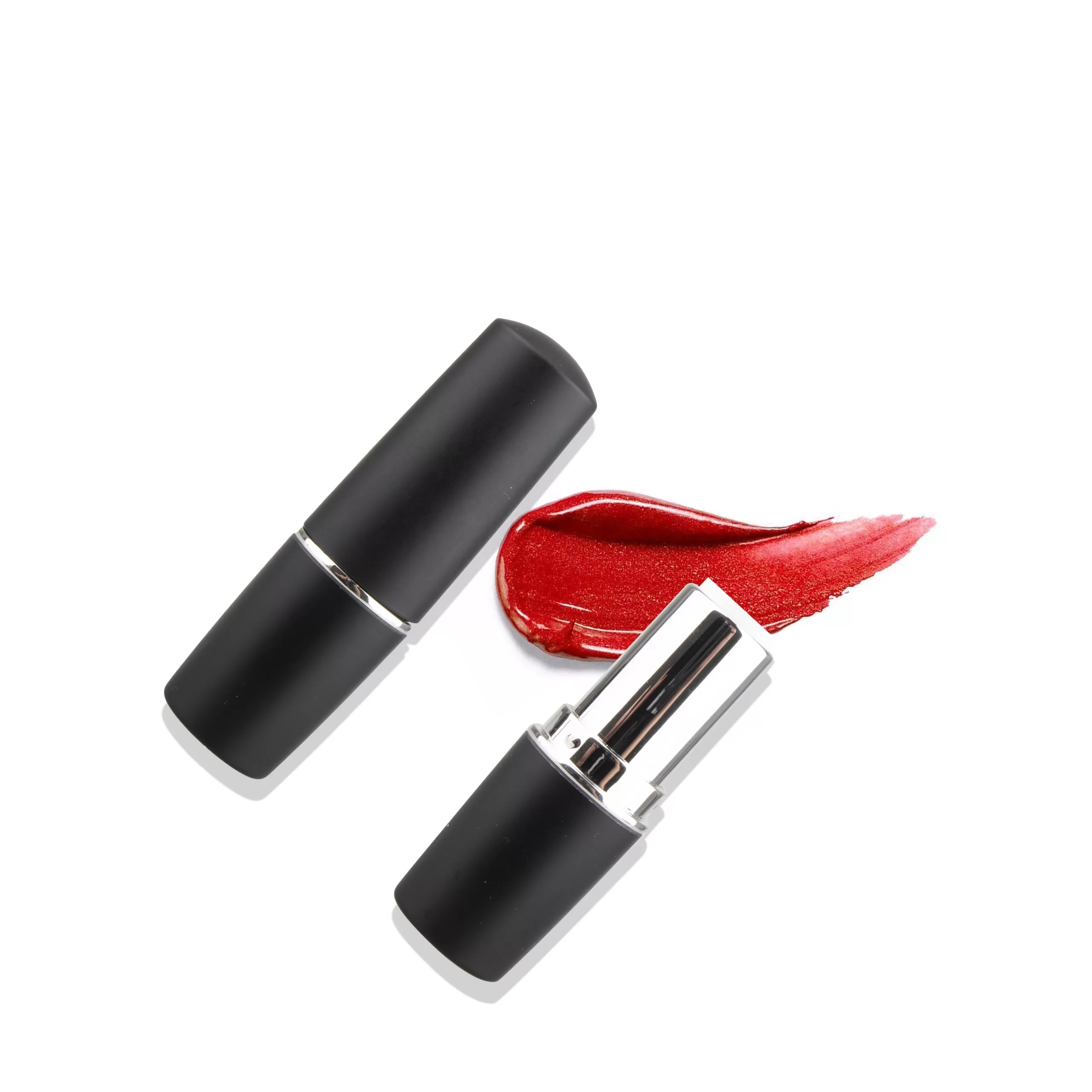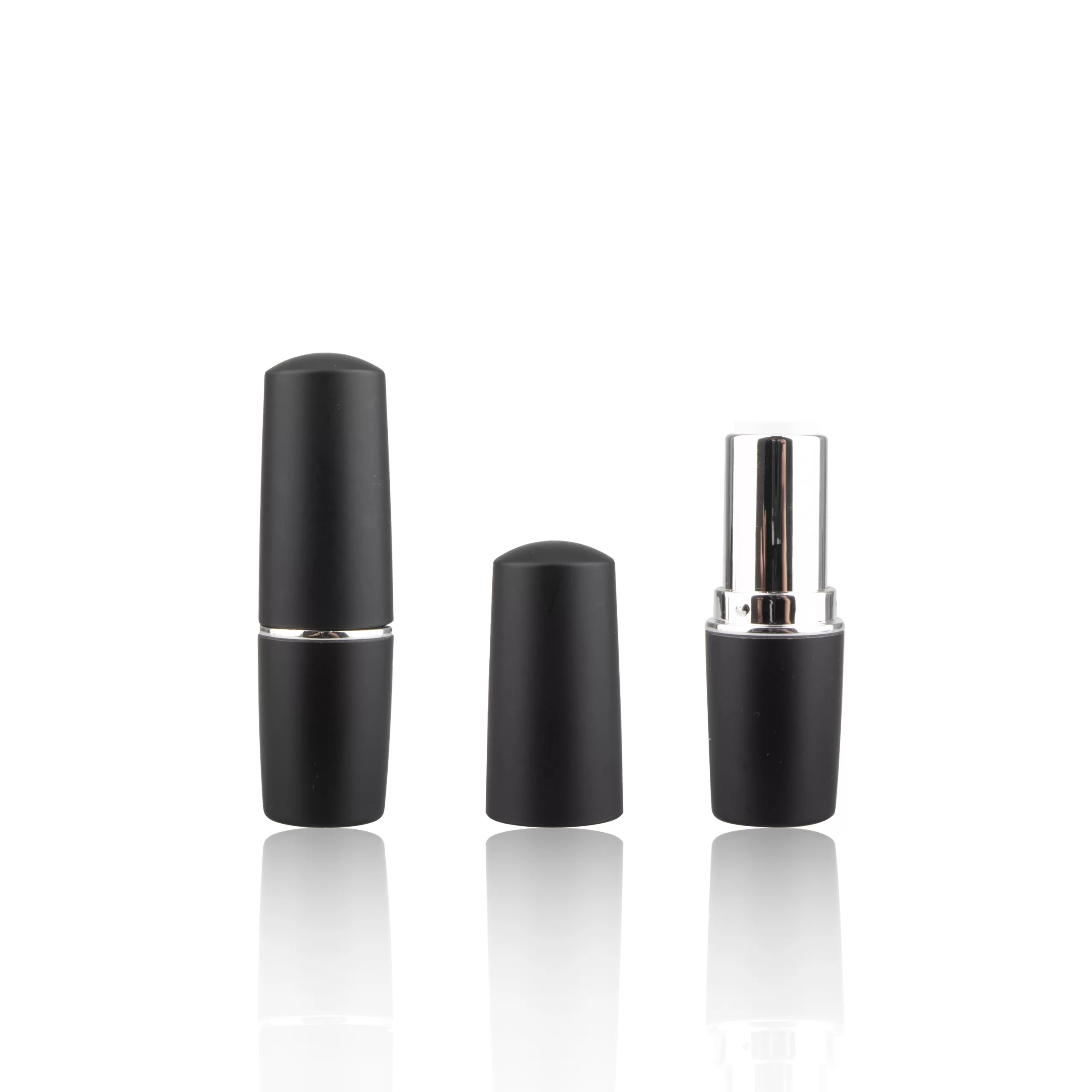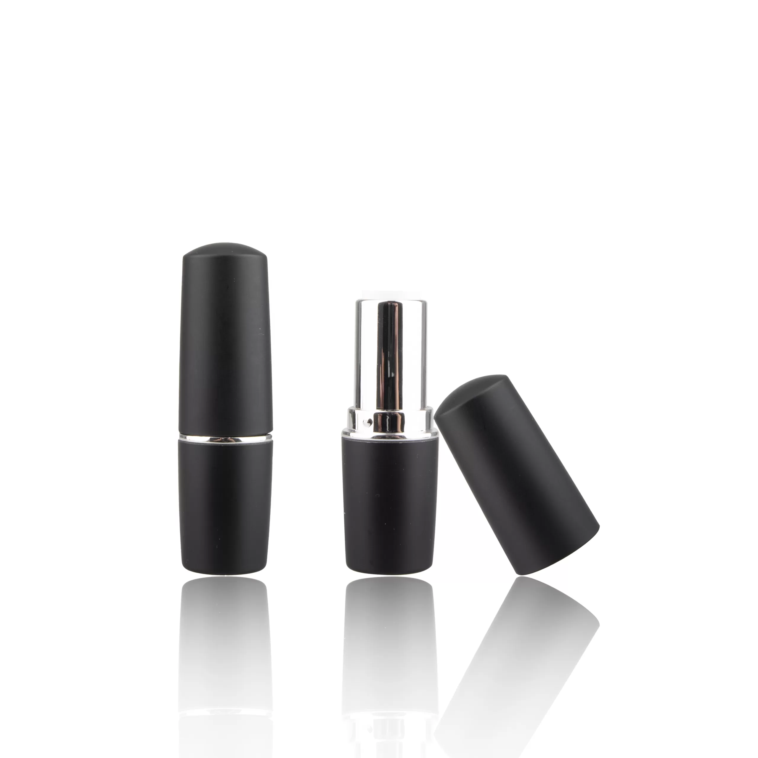 High End Empty Matte Black Lipstick Lip Balm Container Silver Ring Round Shape Cylinder – LS187