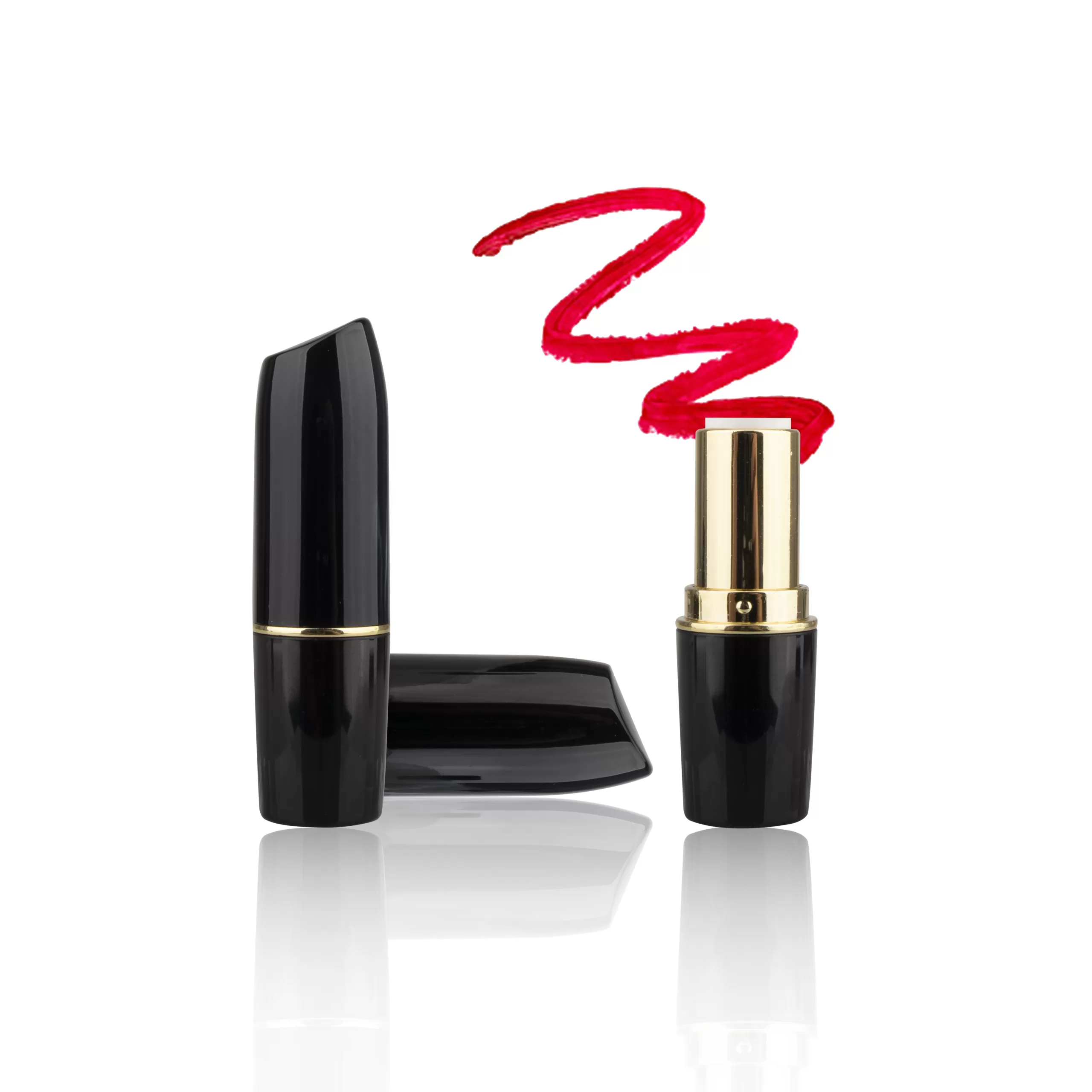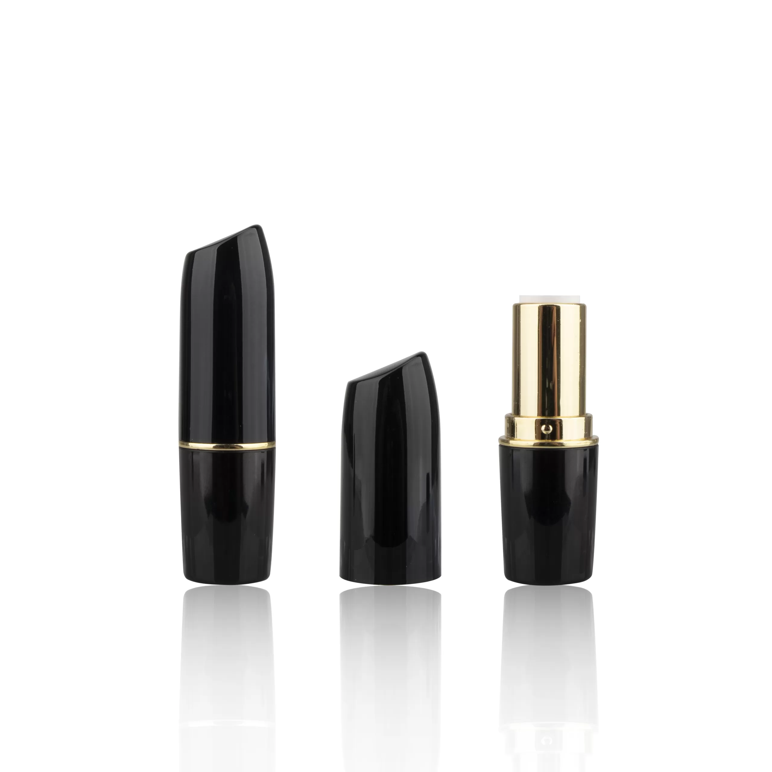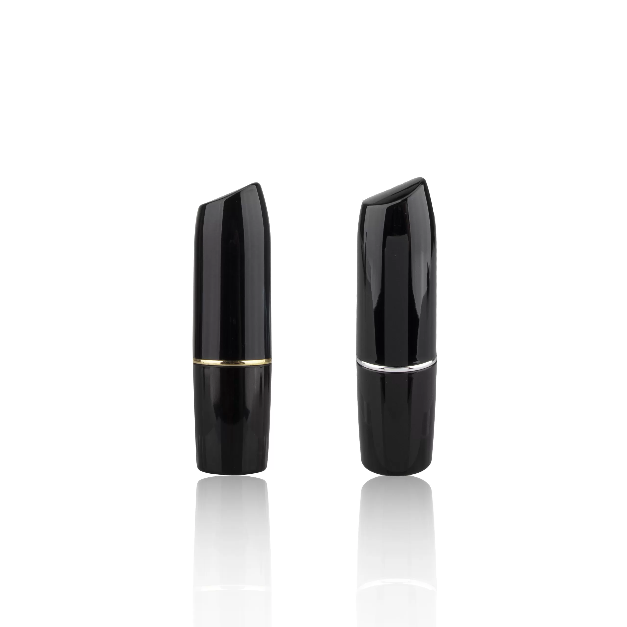 Custom Glossy Black Luxury Lipstick Packaging Case Empty Round Tube Metallic Silver Gold Middle Ring – LS193