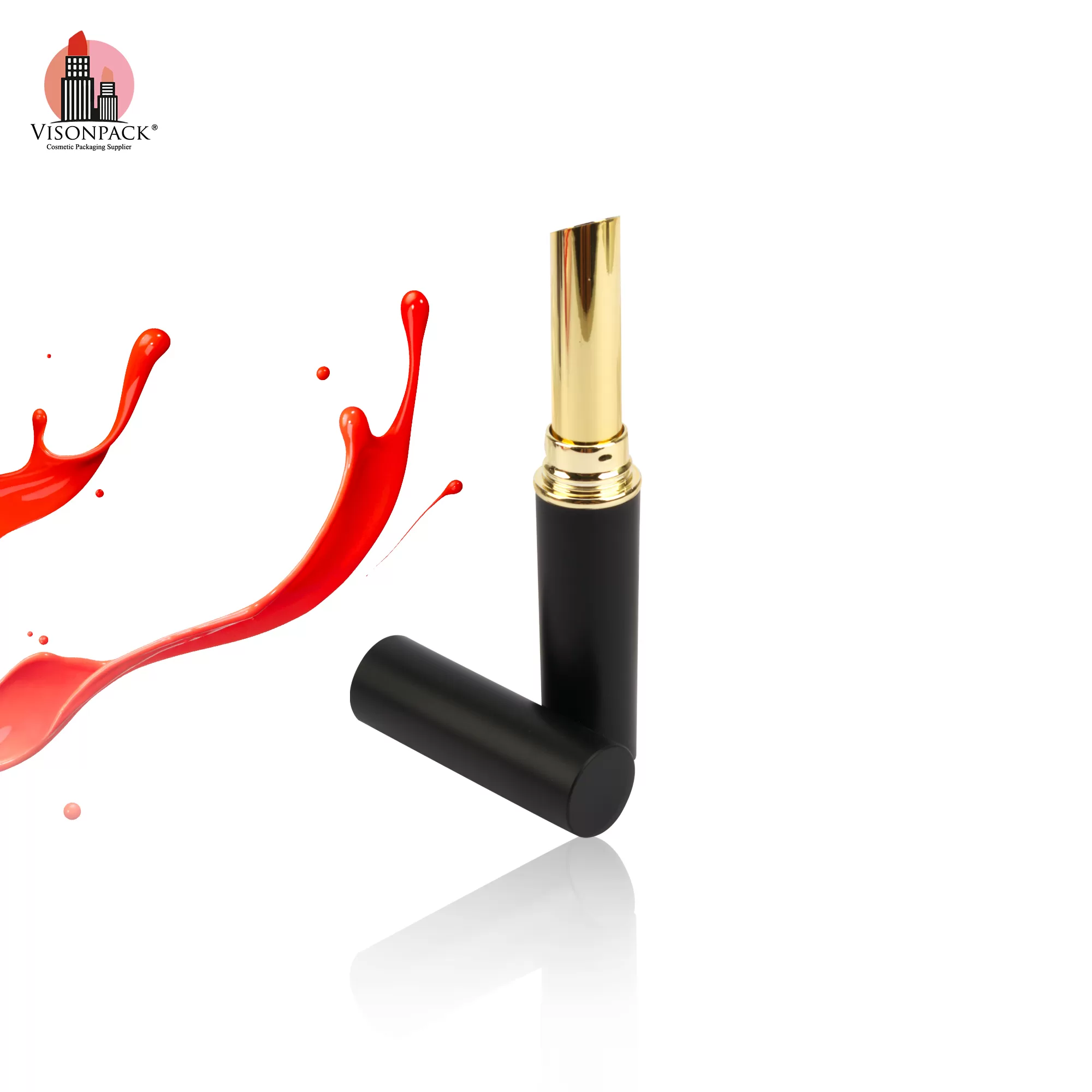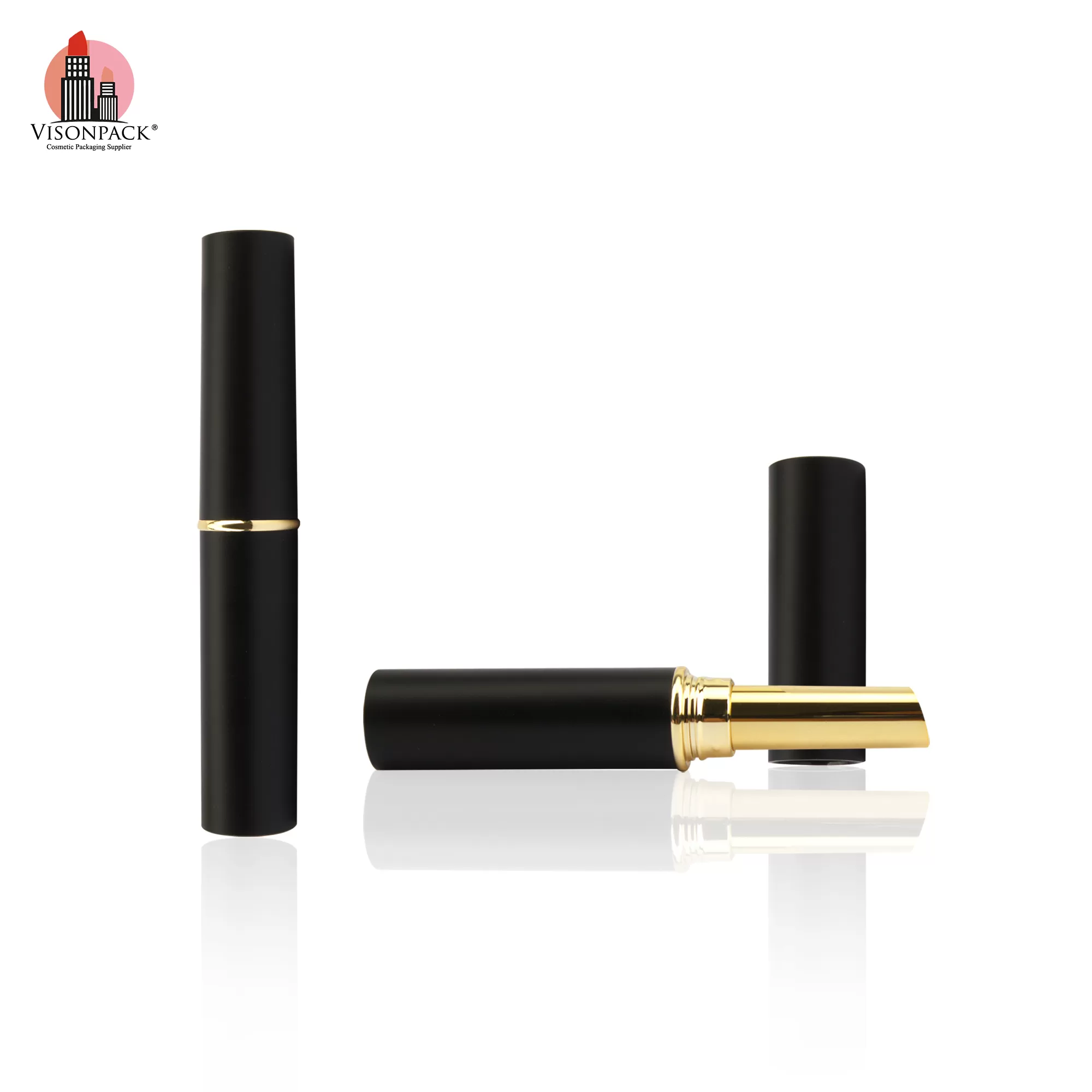 Classical Custom Color Cosmetic Packaging Lip Balm Matte Black Round Empty Slim Lipstick Tubes – LS936