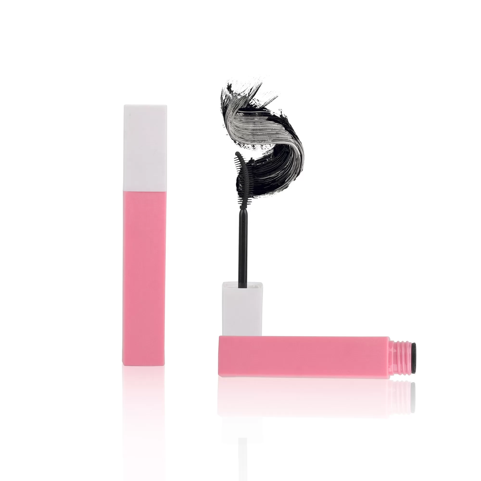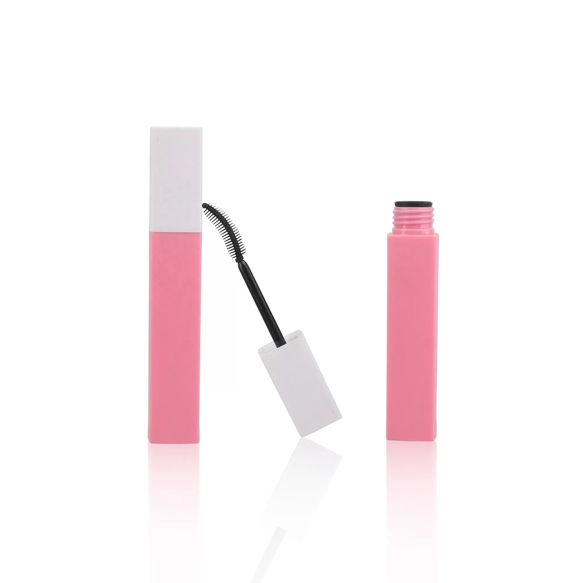 Wholesale 10ml Eyelash Mascara Packaging Wiper Silicone Brush Square Eyeliner Wand Tubes Stopper White Top Pink Bottles – MC098
